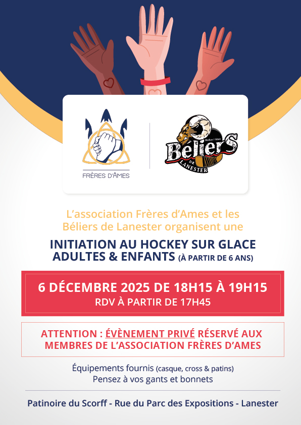 🏒✨ Les Béliers de Lanester et l’association FRÈRES D’ÂMES organisent une initiation au Hockey sur Glace ! ✨🏒