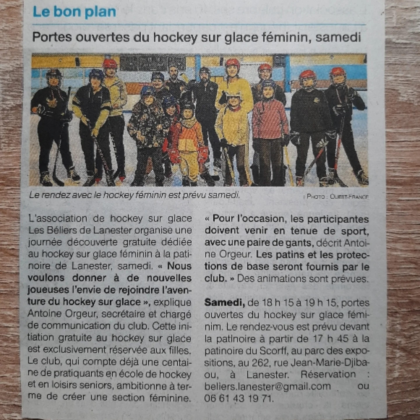 Les filles rdv ce samedi 11 octobre, de 18h15 a 19h15, à la patinoire du Scorff, pour venir essayer le hockey.