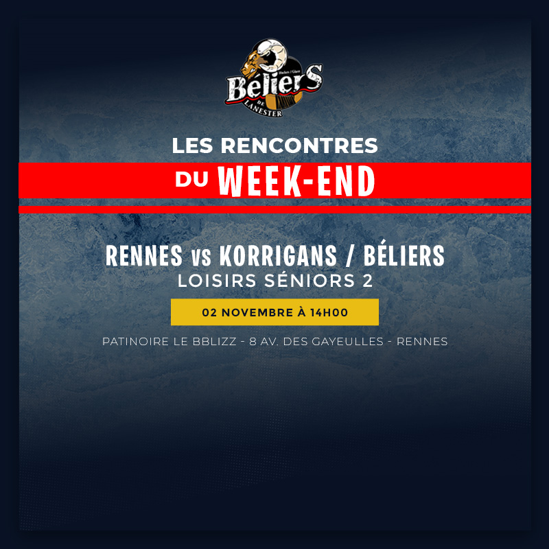 📌 Ce dimanche 02 novembre à 14h00 nos Séniors 2 joueront, avec les Korrigans de St Brieuc, à Rennes, et affronteront les Cormorans de Rennes.