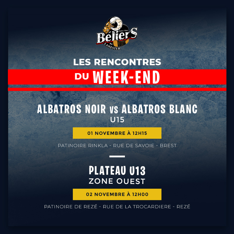 📌 Ce samedi 01 novembre à 12h15 nos U15 se déplaceront à Brest chez les Albatros.