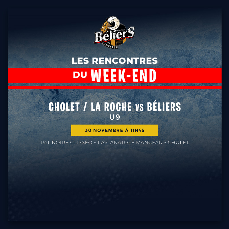 📌 Ce samedi 30 novembre à 11h45 nos U9 se déplaceront à Cholet pour un match contre La roche sur Yon / Cholet.